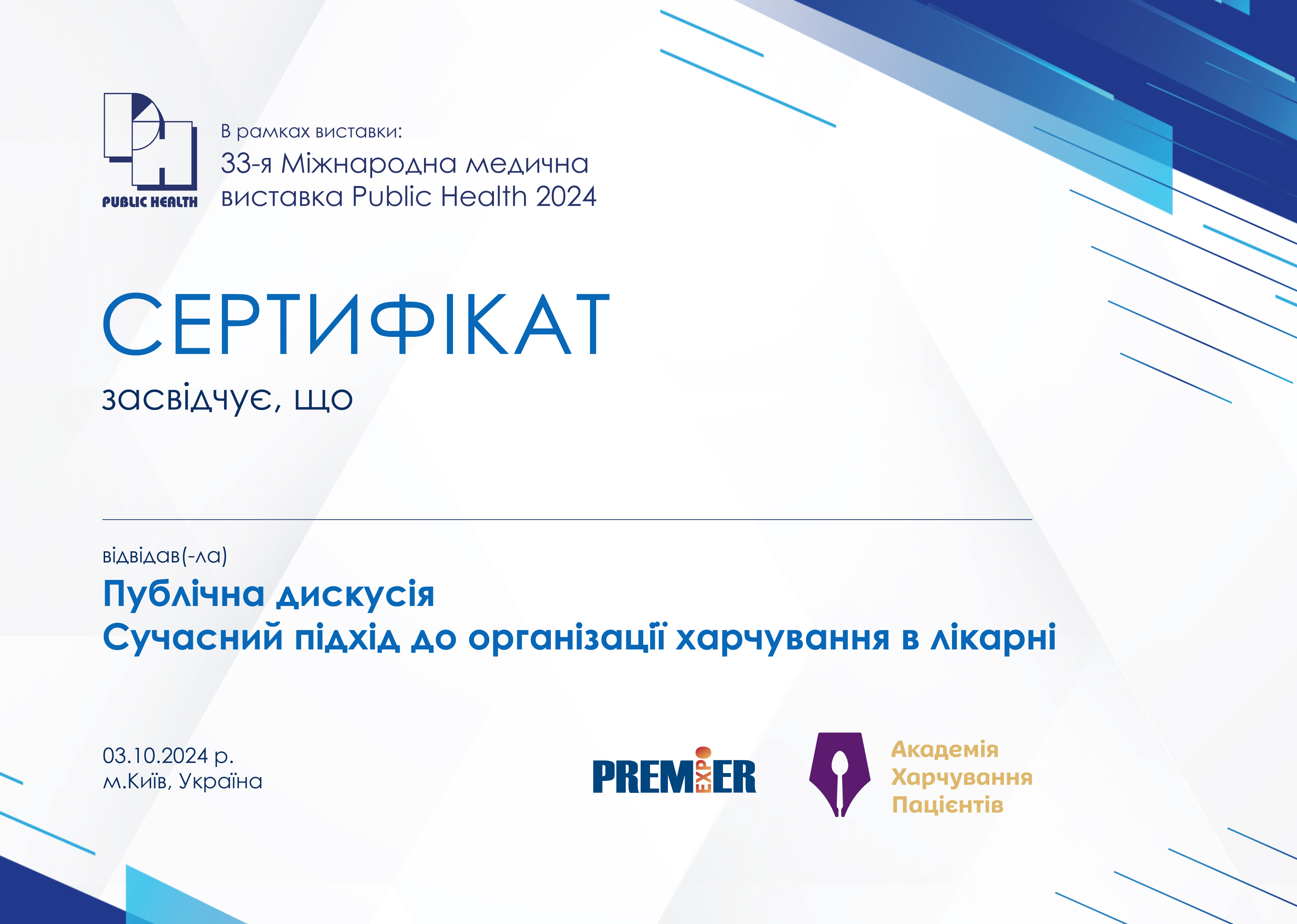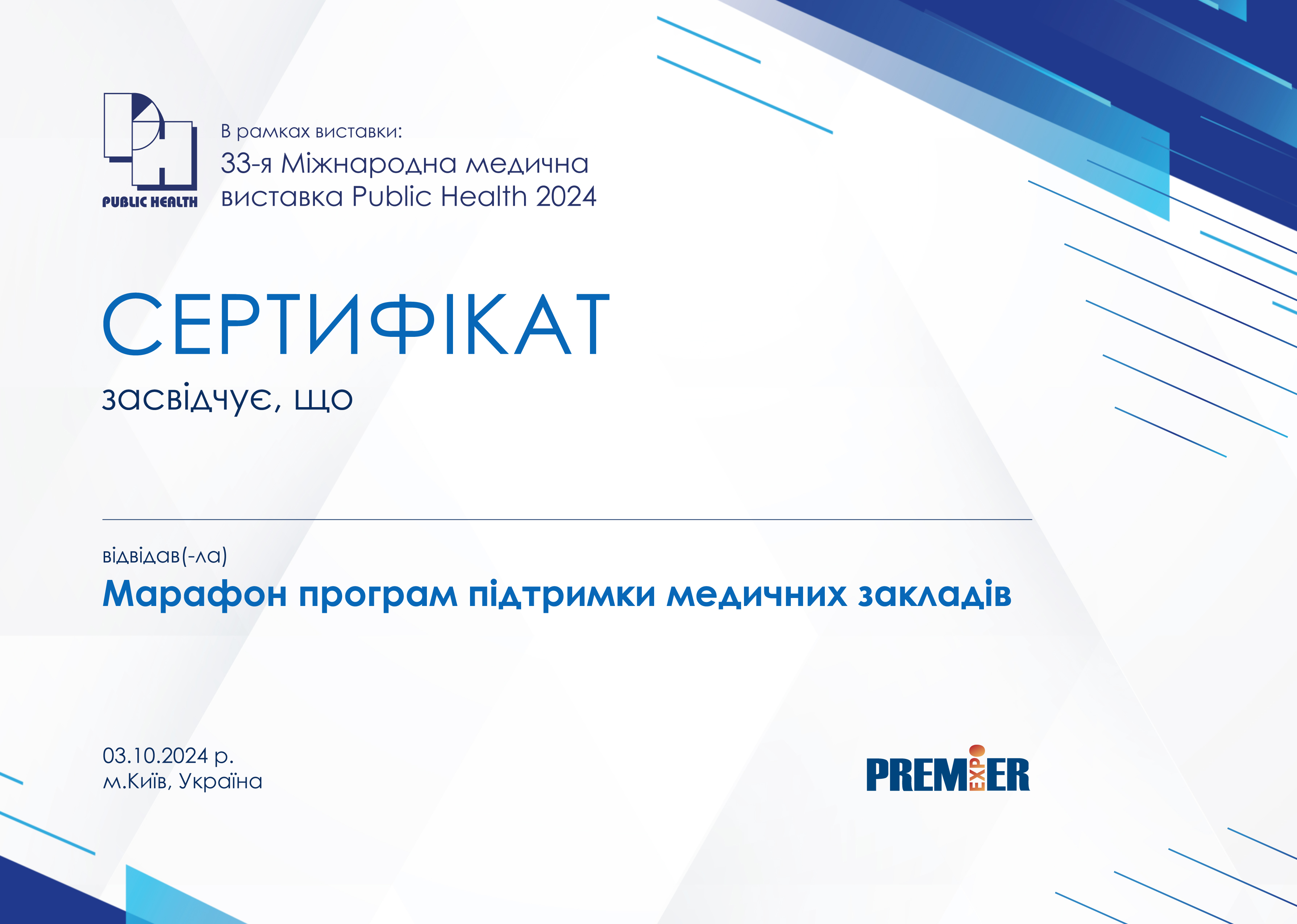 Сертифікати заходів, що відбулись 3 Жовтня в рамках виставки Public Health 2024