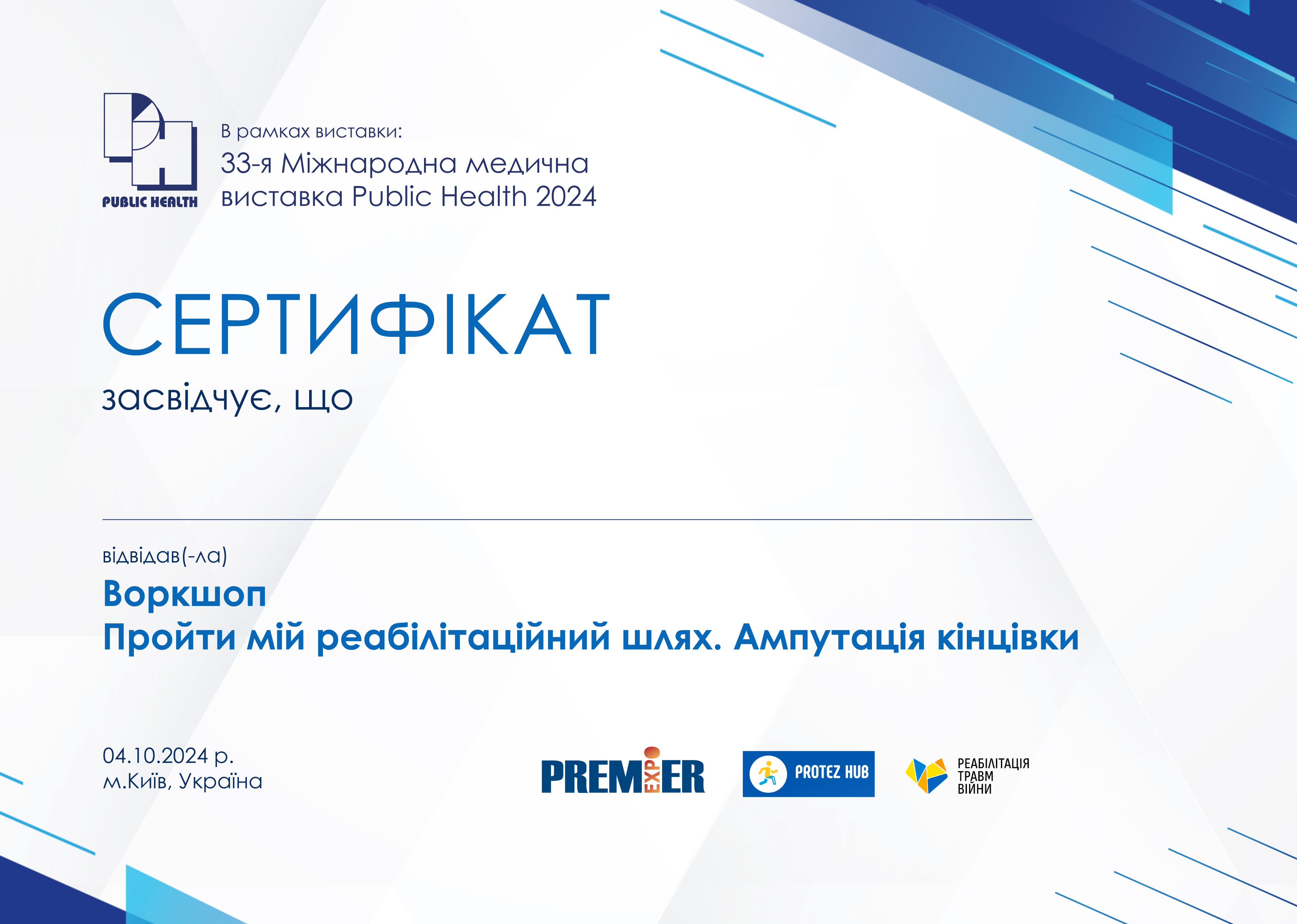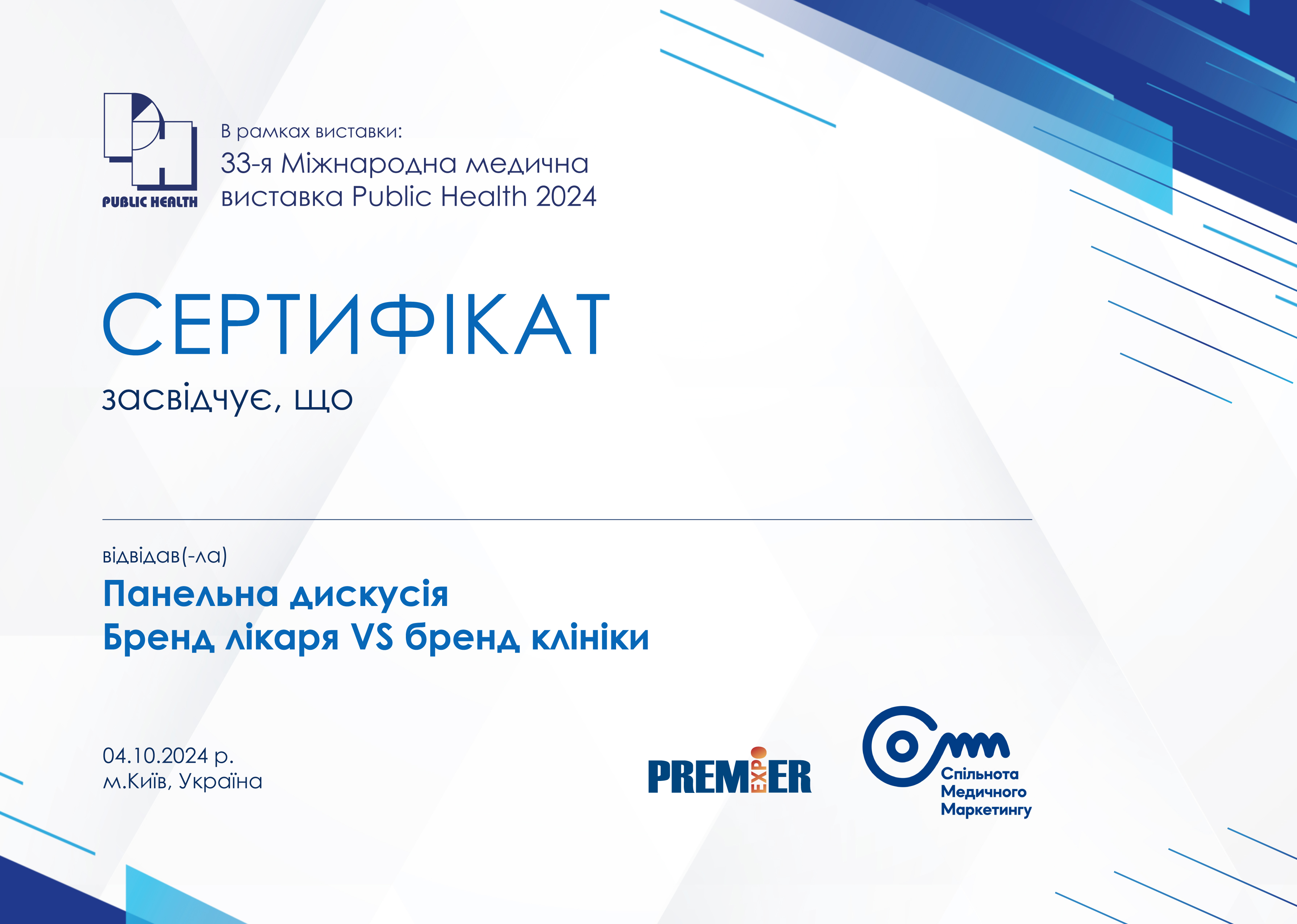 Сертифікати заходів, що відбулись 4 Жовтня в рамках виставки Public Health 2024